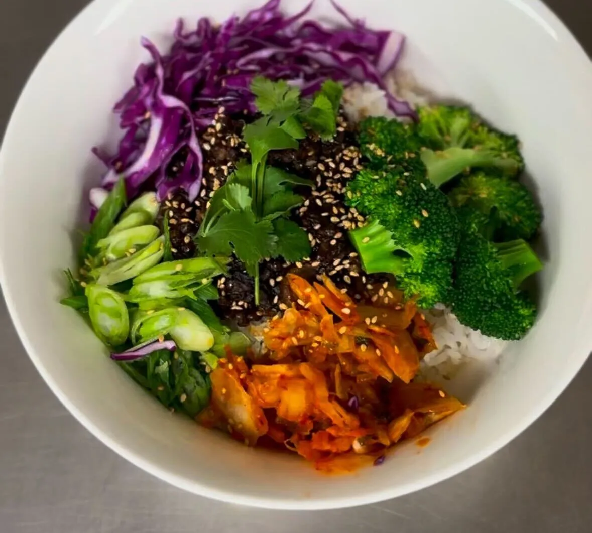 - Serve over hot basmati rice, side of steamed broccoli, sliced green onions, vegan kimchi, and toasted sesame seeds if desired.